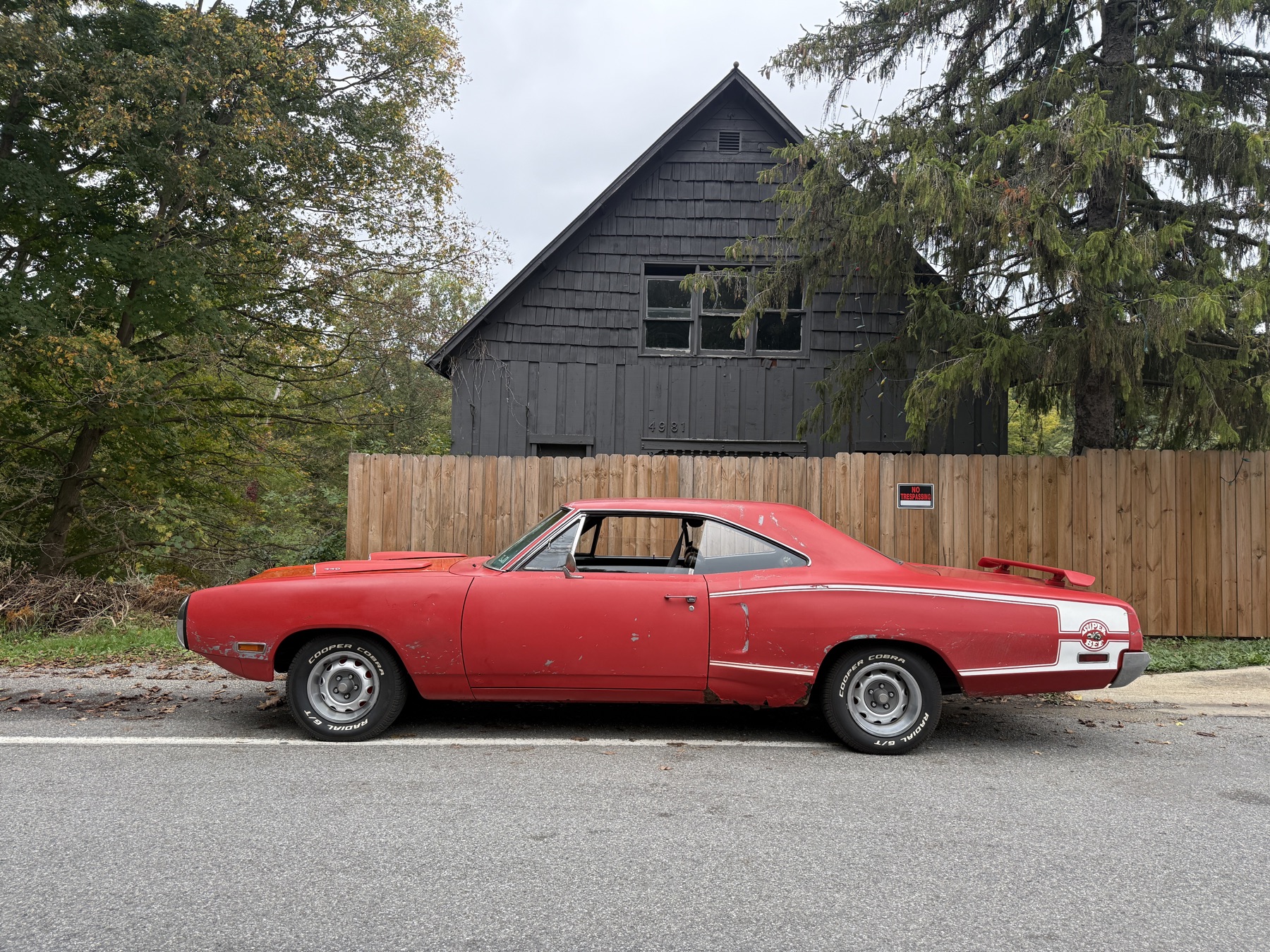 The Super Bee was Dodge's budget muscle car — built down to a price by giving the buyer the powertrain (383 N-code four-barrel standard) and not much else. For 1970 it received a substantial facelift, gaining the divided 'rotary loop' grille, prominent hood scoops, and either bumblebee tail stripes or a longitudinal C-stripe along the body side. WM21 was the post coupe; WM23 was the two-door hardtop. A convertible Super Bee was not offered.